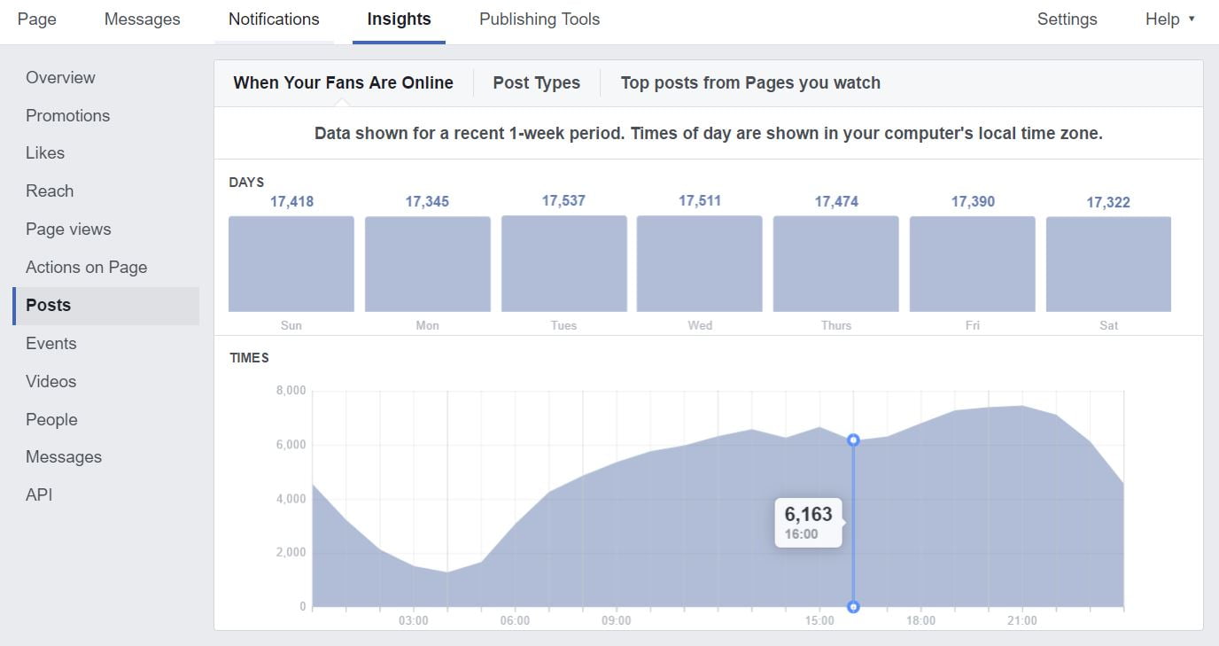 Waktu yang tepat untuk mem-posting Facebook adalah ketika sebagian besar fans kamu sedang online. Beberapa studi menunjukkan bahwa waktu yang tepat yaitu pada hari Rabu, Kamis dan Jumat dari jam 13 sampai jam 3. Jangan terpaku pada jam-jam tersebut karena bisa jadi fans kebanyakan fans kamu tidak berada di waktu tersebut. Oleh karena itu, sangat disarankan agar kamu mencoba-coba posting di waktu yang lain. Untuk melihatnya, kamu bisa melihatnya di dari menu Insight.