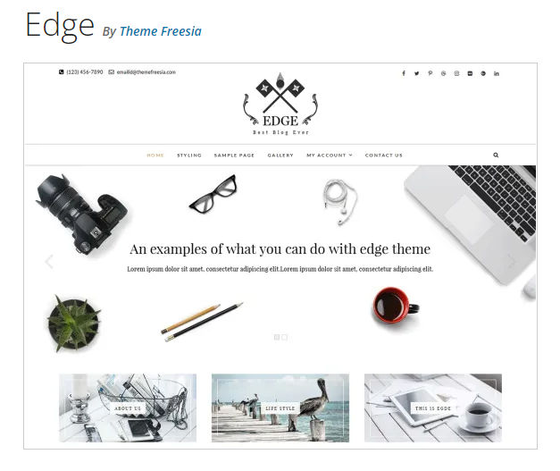 Mewujudkan impian memiliki situs dengan tema responsif dan minimalis akan terasa lebih mudah dengan Edge. Template ini menawarkan tampilan sederhana yang bisa kamu kustomisasi. Bagian putih yang ada pada situs bisa kamu tambahkan gambar agar terlihat lebih cantik.
